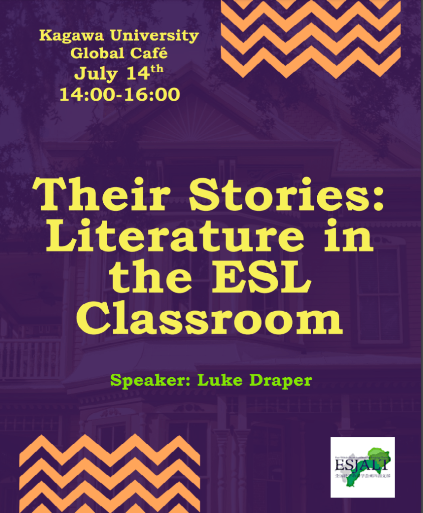 Bio: Luke Draper currently teaches EAP and literature-focused classes at Kwansei Gakuin University in Hyogo, Japan. He has an MA in Creative Writing from Chichester University, UK and is the Publicity Officer for the JALT Literature in Language Teaching (LiLT) SIG. His research interests also include writing workshops, pedagogical stylistics and he writes fiction.